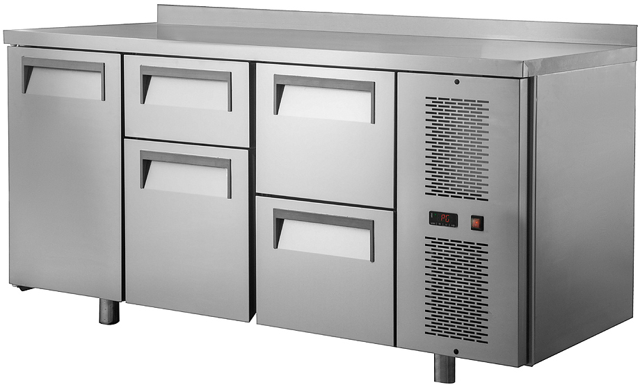 Холодильный стол POLAIR TM3GN-012-GС предназначен для хранения продуктов и обработки ингредиентов на рабочей поверхности на предприятиях общественного питания и торговли. Модель оснащена 4 ящиками разного размера. Цельнозаливной корпус и двери изготовлены из нержавеющей стали, обеспечивающей механическую прочность, термоизоляцию, герметичность и долговечность стола, полки - из окрашенной оцинкованной проволки. Оборудование рассчитано на работу при температуре окружающей среды до 43 °С и относительной влажности воздуха до 80%.