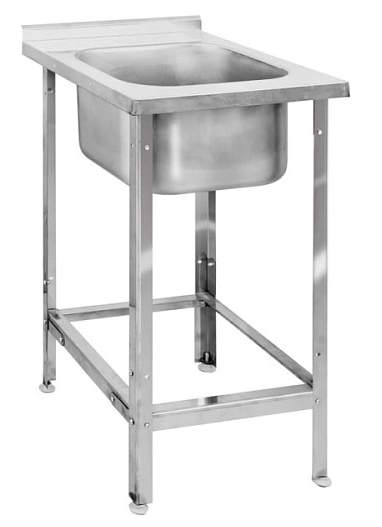 Ванна моечная сварная односекционная с бортом и полкой под смеситель. Ёмкость ванны выполнена из нержавеющей стали марки AISI304. Углы ванн заварены и зашлифованы. Каркас ванны может быть выполнен из крашенной/оцинкованной/нержавеющей стали. Стойки каркаса — уголок. Все кромки ванны имеют подгиб, что полностью исключает получение травмы персоналом при сборке, эксплуатации и санитарной обработке ванны. Опорные ножки регулируются по высоте.