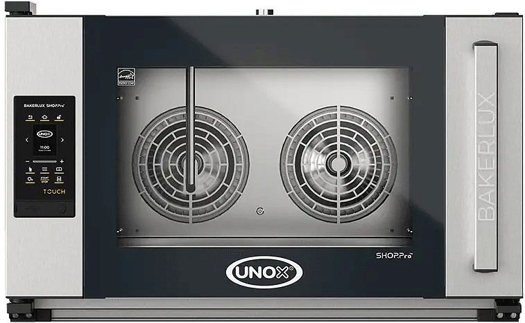 Печь конвекционная UNOX XEFR-04EU-ETRV Rossella серии BAKERLUX SHOP.Pro предназначена для допекания замороженных изделий и выпечки любых хлебобулочных и кондитерских изделий полного цикла на предприятиях общественного питания и торговли, в пекарнях и кондитерских. Модель оснащена электронным управлением с сенсорным ЖК-дисплеем диагональю 2,4" и светодиодным освещением камеры. Камера выполнена из нержавеющей стали AISI 304, направляющие - из хромированной стали.