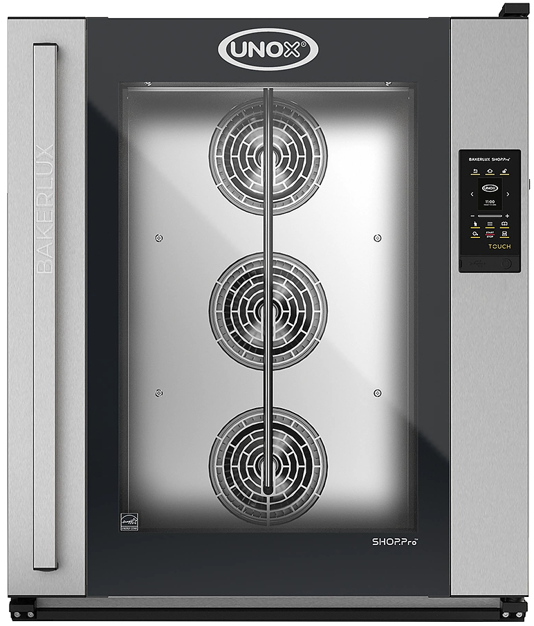 Печь конвекционная UNOX XEFR-10EU-ETLV Camilla серии BAKERLUX SHOP.Pro предназначена для допекания замороженных изделий и выпечки любых хлебобулочных и кондитерских изделий полного цикла на предприятиях общественного питания и торговли, в пекарнях и кондитерских. Модель оснащена электронным управлением с сенсорным ЖК-дисплеем диагональю 2,4" и светодиодным освещением камеры. Камера выполнена из нержавеющей стали AISI 304, направляющие - из гнутого стального L-образного листа.