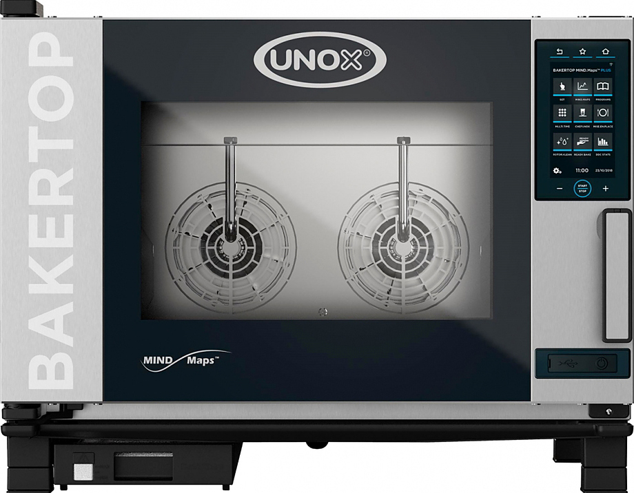 Пароконвектомат UNOX XEBC-04EU-EPRM серии BAKERTOP MIND.Maps™ предназначена для приготовления различных блюд, выпечки хлебобулочных и кондитерских изделий на предприятиях общественного питания и торговли, в пекарнях и кондитерских. Модель оснащена электронным управлением и встоенной в дверь светодиодной подсветкой. Легко открывающееся внутреннее стекло облегчают чистку и обеспечивает максимальную гигиену. Камера с закругленными углами выполнена из нержавеющей стали AISI 304, направляющие - из профилированной стали, дверной замок - из высокопрочного самосмазывающегося технополимера, внутренний штифт дверной ручки - из углеродного волокна.