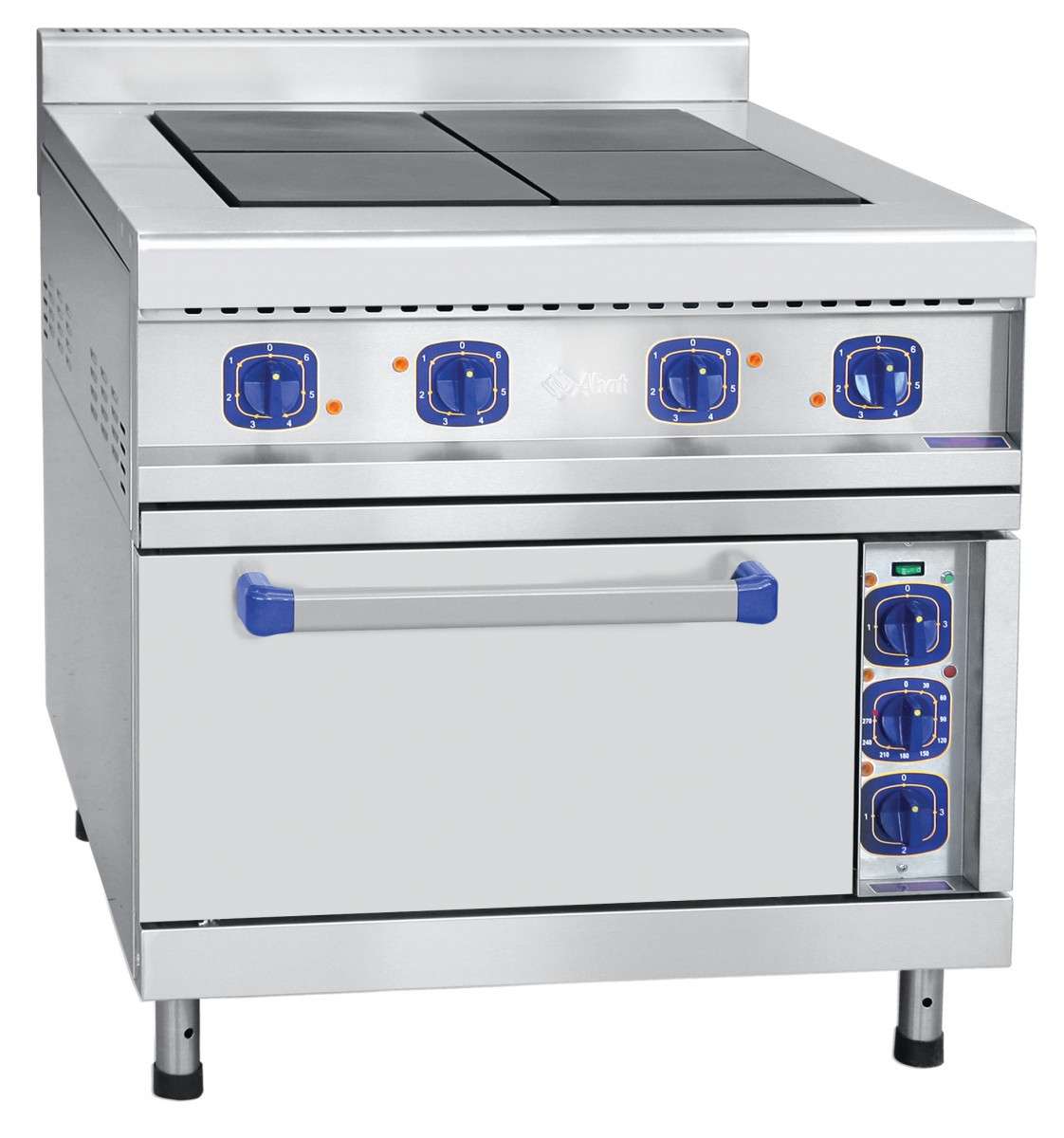 Плита электрическая с жарочным шкафом с возможностью принудительной циркуляции воздуха (конвекцией) и увлажнением предназначена для приготовления первых, вторых, третьих блюд в наплитной посуде, а также для жарки полуфабрикотов из мяса, рыбы, овощей, выпечки мелко штучных кулинарных изделий и запекания творожных блюд на предприятиях общественного питания самостоятельно или в составе технологических линий.