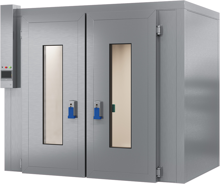Камеры отложенной расстойки серии CRP – модульная конструкция, состоящая из сэндвич-панелей с толщиной теплоизоляции 80 мм. Камеры работают в температурном режиме от -5 до +35 С. В этих камерах предусмотрено замедление ферментации при охлаждении, хранение в охлажденном виде, пробуждение и начало ферментации, расстойка перед выпечкой.