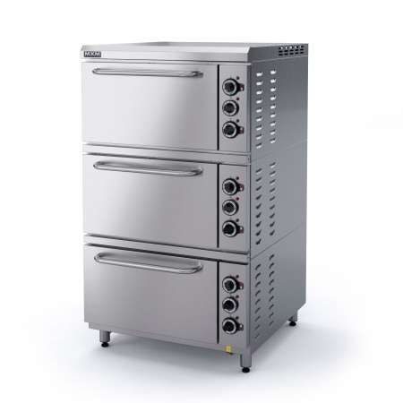 Шкаф жарочный электрический ШЖЭ93, лицевая нерж., модульная, три стандартных духовки из угл. стали под противень 470*530*30 мм.,нерж ТЭН-ы,раздельная регулировка верхних и нижних ТЭН-ов (+20…+270 С)14.4кВт,230/400В